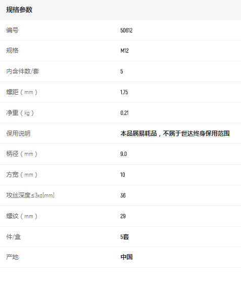 首頁>產(chǎn)品中心>螺紋刀具>其他螺紋刀具>世達5件套粗牙機用絲錐M12*1.75mm