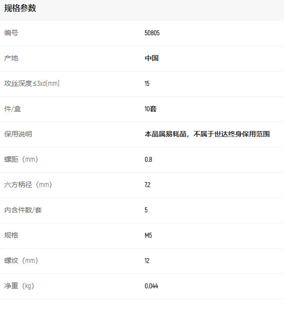 產(chǎn)品名字:世達(dá)5件套高速鋼復(fù)合絲錐M5*0.8mm