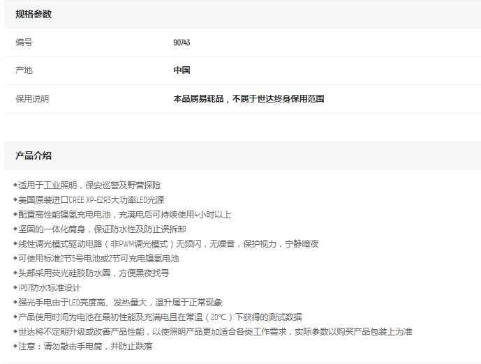 產(chǎn)品名字:世達(dá)充電式手電筒