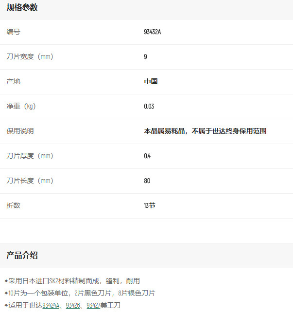 產(chǎn)品名字:世達(dá)10件美工刀片13節(jié)9*80mm